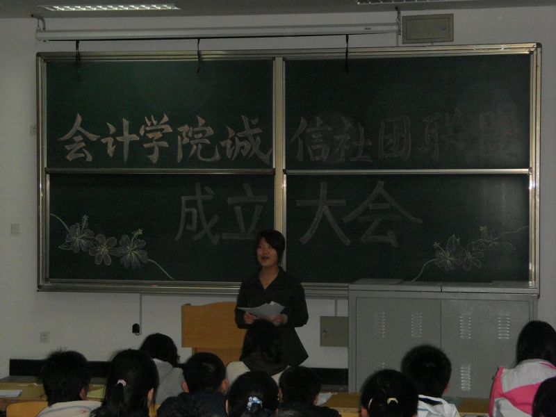 筹划已久的诚信社团联盟在明水校区3201教室举行成立大会。