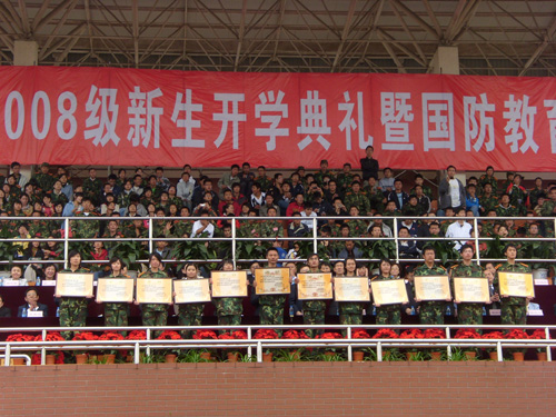 9月27日下午,2007级新生开学典礼暨国防教育表彰大会在明水校区田径场隆重举行。我校6600多名新生英姿飒爽,为他们大学第一课交上了一份满意答卷。