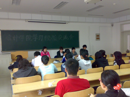 学习部于10月9日下午在逸夫楼举办了学习经验交流会,我院学生会主席胡啸、副主席贾琳琳、质点通讯社社长李艳华及会本0505班团支书王思光担任了此次交流会的嘉宾。