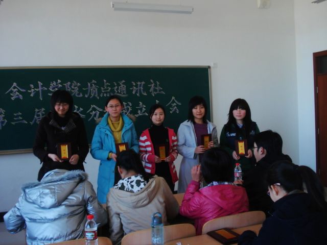 大会由质点通讯社明水分社负责人毛润丽主持。毛润丽首先宣读了质点通讯社2008级成员名单,王佃冰老师和质点通讯社新任领导给2008级新成员颁发了聘书,祝贺他们成为质点通讯社成员,同时勉励他们在以后的工作中更加努力。质点通讯社社长卢玥作了精彩发言,她分别从感情、工作、学习三个方面谈了对大家的要求和希望,强调了质点通讯社一家人的概念,告诫大家一定要做好自己的本职工作,努力学习。最后,毛润丽做了总结发言,她对本学期明水分社的工作作了明确要求,特别是要对我院的系列活动,如深入学习实践科学发展观、模拟招聘会、校运动会等,要做到跟踪报道。同时希望大家尽早把质点纸制杂志办好。