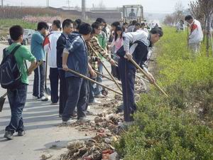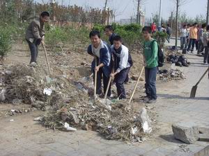 下午1:40,我院60多名同学纷纷拿着铁锨、垃圾桶、耙子等工具到明水校区西门集合,在我院学生会卫生部人员的带领下在指定区域开始卫生扫除。我院负责西门南侧区域的卫生扫除工作。女同学深入花丛捡拾废纸、塑料袋等细小垃圾,男同学则拿起铁锨、耙子把大量的商贩剩下的已燃煤球、饭盒、蛋壳等垃圾聚集成堆,最后将垃圾铲入推土机中。同学们不怕苦、不怕累,尽心尽力打扫到4:30,终于使花丛重返洁净。