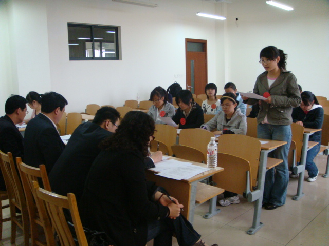 在财务会计及注册会计师面试点中,30名同学分为三批,每批10名同学在等候室抽签、登记后由学生会工作人员发号码牌并按顺序全部进入面试考场,此次面试采取开座谈会的办法,就一个主题展开讨论,在经历了首轮面试后,同学们已经掌握了一些面试技巧,在陈述自己的观点时,清晰而有条理,虽然专业知识还不够全面,但是依然同学们能巧妙地运用到面试中。考官们对同学们的表现给予了肯定,同时也指出了大家的不足之处。随后考官还对同学们进行随机提问,不仅展示了同学们的专业知识水平,更考验了面试同学的反应能力。