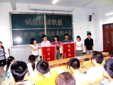 6月5日晚,我院诚信社团联盟换届暨08~09总结表彰大会在明水校区1104教室召开,我院的十个社团的会长及理事参加了此次会议。联盟主席李慧、秘书长高春等人到场担任嘉宾并发表了讲话。