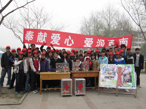 标有“奉献爱心,爱润西南”的横幅在空中飘扬,映衬在每个志愿者辛劳却又充满欣慰的脸上。截止上午十一点,志愿者们总共为灾区筹集到1804元,此次募捐款项总数将交由章丘市红十字会以山东经济国外足球预测 的名义统一捐赠至西南灾区,希望能帮助旱区人民早日解决干旱之渴。