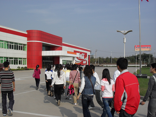 此次的参观由公司的总经理秘书高景女士负责接待。她首先向同学们介绍了济南可口可乐饮料有限公司的成立发展情况,又提出了参观的注意事项;然后在赠饮室让同学们品尝了各类饮料;接着与大家一起在放映厅观看了可口可乐的宣传短片,在短片中同学们了解了可口可乐的诞生、发展,它与奥运会、世界杯等的合作,与中国的渊源,短片结束后,高女士还提出了几个问题并向回答正确的同学发放了纪念品;随后带领大家参观了可口可乐百年历史长廊、PET(塑料瓶装饮料)生产线、600快线(目前国内速度最快的生产线)、RB(玻璃瓶装饮料)生产线、奥运五环长廊;最后来到了济南可口可乐博物馆,由同学们自行参观。