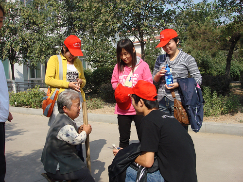 统一戴着红帽子的会员们首先为老人们表演精心准备的节目——朗诵、合唱、口琴独奏等,丰富多样的节目引来老人们的阵阵掌声。节目结束后,会员们三四个一组,分别搀扶着老人们去各自的房间,陪他们聊天、下棋、打牌,同学们如老人们的亲人细心地为他们提热水,倒垃圾,老人们对大家赞叹不已。据悉,星火志愿者协会已经连续两年定期组织会员慰问老人,明水敬老院的负责人对同学们的表现给予了高度赞扬和衷心感谢。