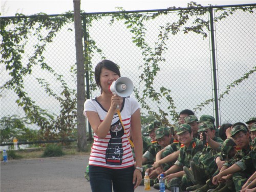 傅叶同学一首《唯一》让大家感受到了她嗓音的醇美,李芃姝的《映山红》又让大家领略到了民歌的魅力,周憬安《你是我的眼》深情款款。上届校园KTV大赛一等奖得主张帆同学对《梦里水乡》的柔情演绎将这次演出推向了高潮。之后,周憬安与张帆合唱的《青藏高原》更是让大一的新生们对这两位学长、学姐的唱功表示惊叹。整场演出在孙静同学《祝福》的歌声中结束。由于场地条件限制,表演者只能用扩音器代替话筒进行清唱,但这并没有影响到他们水平的发挥,他们的表演受到了新生和教官的热烈欢迎。