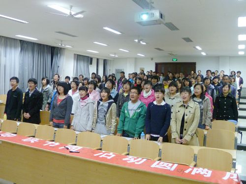 首届“读书周”活动开幕仪式在明水校区3217教室举行。参加仪式的有10级各班学生代表约230人。