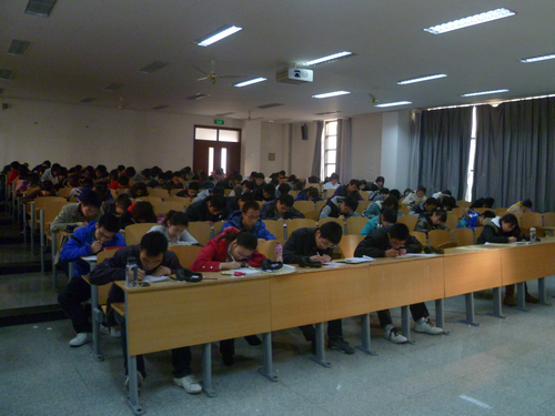 考前,担任监考官的同学接受了统一培训,明确了考场、注意事项并拿到了试卷。下午两点左右,参与考试的同学陆续入场,监考同学拆封并分发试卷,进行了试音环节。于两点十分,考试正式开始。第一部分有写作和快速阅读理解两个题型,而第二部分则由听力、精读、完形填空和翻译四项内容组成,其中听力部分是由EBS电台放音,同学们通过耳机接收信息,听力音质和清晰程度明显提高。考试过程中,同学们奋笔疾书,认真但又略带紧张的作答试题,最终,考试于下午四点二十圆满结束。