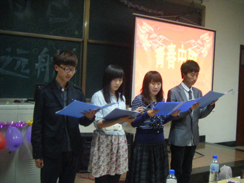 4月26日晚七点,由我院心翔语艺社、校逆时针话剧社主办,燕山相声协会协办的“摆渡自己,为梦远航”校友联合汇演在明水校区1201教室火爆上演。校学生会明水校区负责人、诚信社团联盟与活动主办社团大二负责人作为嘉宾共同出席汇演。来自全校各院的近百名同学参加了本次活动。