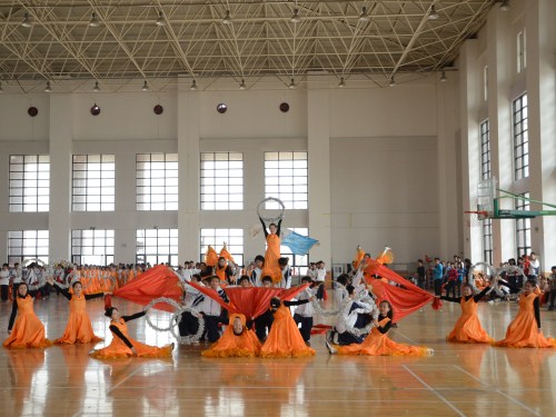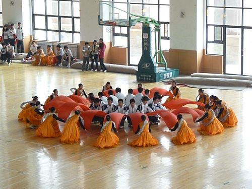 2011年春季运动会之团体操预赛在明水校区体育馆举行。来自全校各院的14支代表队积极参加了本次比赛。
