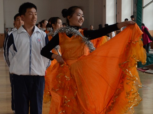 赛前,14支代表队被分为七组,要求两两一组展示舞蹈。各队舞蹈均由规定动作和结尾自选动作两部分组成,评委会根据选手们的服装搭配、精神面貌以及动作表达等方面进行审评。本次预赛,我院代表队被分到第三组,作为第六支队伍上场表演。随着《让我们舞起来》的音乐响起,我院团体操队员早已各就其位,并伴随着音乐翩翩起舞,16名男生慢慢举托起扇子,16名女生缓缓竖起花圈,舞姿优雅,荡人心弦。其后,一个个优美的旋转,一处处整齐的舞动更加凸显了平时训练的辛苦与付出。在最后的自选动作环节,我院队员不断变换着队形,在增加舞蹈难度的同时推陈出新,深刻展示了我院队员良好的舞蹈功底和创新思维。我院团体操项目由女生部和文艺部共同负责,早在三月上旬就开始进行选拔、训练工作;此次,我院学生会副主席孙雪嫣、文艺部部长赵玲以及女生部部长张爽也专程来到明水,为队员们加油鼓劲。