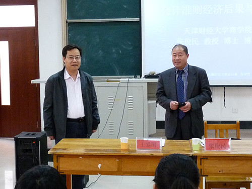 会计系主任张俊民教授担任演讲嘉宾,我院院长王爱国教授主持了本次会议。