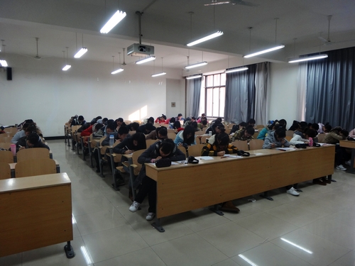 此次考试严格按照英语四级的流程及形式,考前对担任监考任务的同学们进行了统一培训。下午两点,同学们陆续入场,进行听力试音。两点十分,英语四级模拟考试正式开始。试题共分为六部分,分别对写作、快速阅读、听力、精读、完形填空、翻译六大板块进行考察。大一新生由于第一次接触英语四级考试,对英语四级考试模式还不太适应,表现得有些紧张。相比之下,大二同学表现得比较轻松,为12月即将到来的英语四级考试打好预备战役。