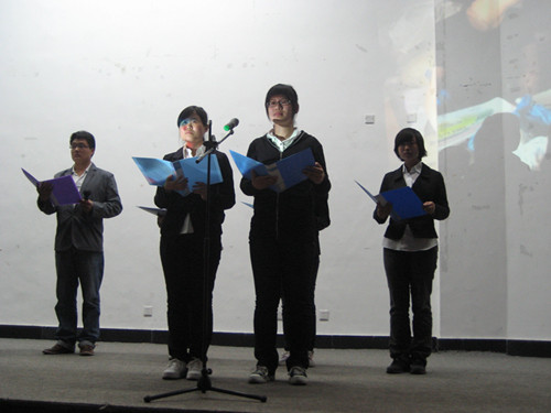 晚会分为“慈善表演”和“善款募捐”两个环节。表演在校乐队悠扬的演奏中拉开帷幕。其中,自由舞社爵士舞表演、轮滑社轮滑表演和武术协会“刀光剑影”表演富有动感,惊喜连连,赢得现场观众阵阵掌声。紧接而来的歌曲《东风破》、《罗密欧与朱丽叶》、相声《朋友谱》让现场气氛迅速升温。诗歌朗诵《感谢阳光》、《孩子,不哭》用“孩子啊,不哭,因为还有梦”深情道出了西部儿童乐观的心态和不屈的意志,并用一句“让我们伸出爱的双手,共同点亮希望的灯火,一起走进幸福的路,爱的路”向现场观众发出了呼吁。继而,在募捐环节中,嘉宾代表依次上台捐款。与此同时,主办方在教室出口处放置捐款箱供观众自愿捐款。