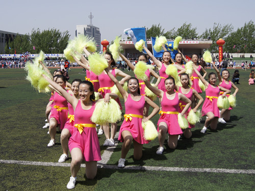 校运动会正如火如荼的进行着,看台上人声鼎沸,观众热情如潮。啦啦操的姑娘们灵动在明媚的阳光下,用轻快的舞姿和甜美的微笑感染着赛场上的所有人。她们将舞蹈、艺术体操、彩带与彩球进行完美融合,旋转、跳跃,伴随着运动员矫健的步伐,用粲然的笑颊和曼妙的舞姿奏出希望的乐章。这是多少天不畏疲惫的训练成果,这是多少次为一组舞蹈不断磨合的杰作。她们默默熟悉着每一个舞步,仔细回想着每一个动作,只为了这一场运动的盛宴。破茧化蝶,带着伤痛的灿烂,幻化为阳光下的精灵,用热情点燃赛场上运动健儿们拼搏的激情。春日的体育场,有了啦啦操的装扮,竟是如此灵动美丽。也许摘金夺银的梦想和他们无缘,也许他们只是扮演了一个小小的角色,但是正因为有了他们,运动员会更加坚定地冲向终点,赛场内狂热的气氛才得以延续,看台上的观众才会在紧张的比赛中感受到体育竞技的独特魅力。