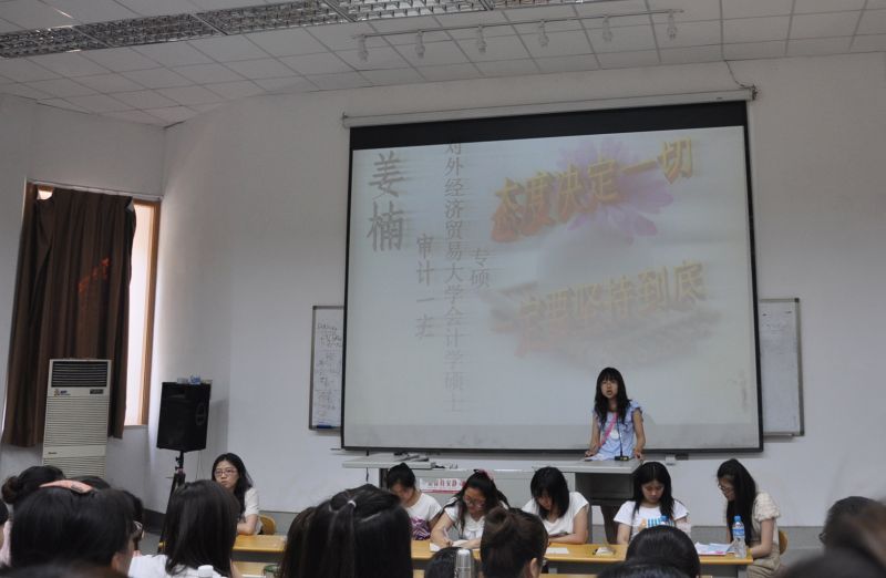 本次交流会邀请到王婷、肖潇、杨金、刘盼、张瑜、陈思、姜楠7位08级考研中的佼佼者担任嘉宾,与同学们进行近距离的交流和指导。交流会上,嘉宾介绍的重点在于备考过程中在学习方法、时间安排、心态调整方面的心得体会。考取中央财经大学研究生的王婷为同学们详细介绍了自己备考过程中的切身经历,并细致传授了自己在数学、英语、政治复习方法上的经验;考入北京国家国外足球预测网站 专硕的肖潇特别为同学们介绍了专硕与普硕的差别,提醒同学们根据自身情况正确选择,另外强调了择校的重要性,告诫同学们要有自己的主观判断,不要人云亦云;考取本校研究生的刘盼结合自身特点着重介绍了考研过程中保持良好心态的重要性,提醒同学们不要在琐碎的事情上浪费过多时间与经历,保持简单平静的心态。