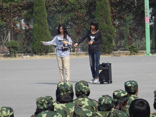 随后,国外足球预测网站 文艺部、女生部联合国外足球预测网站 飞天艺术团举办了一场近三十分钟的下连队慰问演出活动。演出开始,景安戈和谭然同学合唱的一首旋律激昂的《三天三夜》将训练疲惫的新生的热情点燃。一曲《和你一样》,在师安格和张娜同学的深情演绎下,让大一新生感受到全力以赴追逐梦想的力量。随后,冯悦同学用二胡演奏的《rolling in the deep》新颖独特,赢得现场阵阵掌声;汪琳蕊同学一支桑巴舞动感十足,更是掀起全场高潮。最后,在新生的热情推荐下,一营七连董连长为大家献上一首《最珍贵的角落》,歌声间洋溢着新生与教官之间的浓浓情谊。尽管场地、时间有限,但他们精彩的表演依然受到了新生和教官的广泛欢迎,极大地丰富了军训生活。