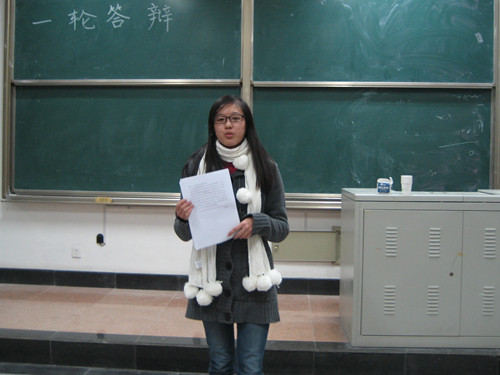 晚五点半,“挑战杯”一轮答辩会正式开始。本次答辩会分为项目陈述和评委提问两个环节。在项目陈述环节中,对于当今世界面临的日趋严峻的环境污染问题,有选手提出“泉水污染治理和涵养”和“工业管理模式的调查研究”等课题,不仅深入刨析了我国水资源和工业污染现状,而且通过调查信息提出了严谨的治理方案和管理模式;选手提出的“品牌战略化研究”课题则针对现在国内出售的品牌多出自国外这一现状,进行调查并分析原因,借以推动我国品牌经济的发展;站在当代大学生的立场上,选手提出的“现代大学生消费现状的研究”这一课题,不仅贴近生活,而且切实帮助大学生建立良好的理财观念,杜绝奢靡消费。在评委提问环节,选手沉着应对评委针对他们的研究课题所提出的问题,自信应答。同时评委站在研究课题可行性的基础上对选手进行专业指导。评委分别针对项目调研的方法给出了切实可行的建议,在指出项目不足之处的同时也给予选手肯定与鼓励。整个答辩会现场气氛活跃,选手或激情四射,或低调朴实;评委们也用细致入微的点评为选手指点迷津。此次“挑战杯”一轮答辩研究课题贴近生活,提出的解决方案有利于社会经济、文化及环境保护等方面的发展,体现了当代大学生关心社会热点问题的积极态度。