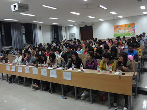 此次活动意在让同学们掌握知识、展示自我、锻炼能力。活动共分为四个环节,分别为演讲比赛、心有灵犀、知识竞答和乡话配音。活动开始,参赛的五队选手分别进行自我介绍,选手们都表现得信心满满。首先,五队参赛选手分别以“我的大学生活”为主题带来演讲,从“来到大学的感受”到应该“怎样过好大学生活”,表达了自己的见解,评委们也给出了中肯的点评。随后,在二三环节中,选手们各显其能,向我们展示了他们的默契配合和丰富的知识储备。最后,在乡话配音环节中,搞笑的影音和有趣的各地方言,让现场笑趣横生。活动中穿插心翔语艺社成员带来的表演,活跃了现场气氛。