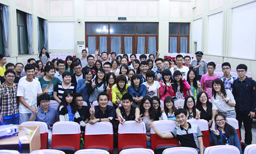 之后,电影主创与观众们之间的互动引起现场的新一轮高潮。导演蔡岳勋和演员邹承恩耐心回答现场同学们的问题,幽默风趣又不失严谨细心。并向现场观众们赠送了由主创们亲笔签名的海报和电影票。最后,影片主创们与现场同学进行了亲密合影,同学们都为能与偶像们零距离接触感到喜悦。