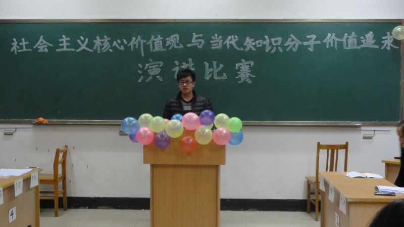 2号楼301举办,该次活动的主题为社会主义核心价值观与当代知识分子价值追求。比赛分为两个环节,第一环节为知识竞赛环节,包括问答环节和抢答环节,参赛同学答题基础知识扎实,答题热情高昂,现场气氛十分活跃。第二环节为主题演讲环节,参赛小组分别进行了以关于践行社会主义核心价值、当代知识分子的家国情怀以及中国梦与个人梦等为主题的演讲。最后主持人总结此次活动,宣布活动在愉快的氛围中结束。