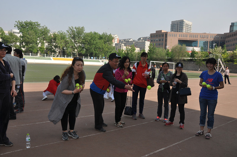 在燕山校区田径场举办了一场别开生面的教工趣味运动会。共进行了定点投球、夹玻璃球、跳绳3个个人项目和顶书接力跑、背靠背夹气球、套圈接龙3个集体项目。我院教工积极响应,70余名教工踊跃报名参加,比赛场上大家卯足全力、竞争激烈,到处是一片加油呐喊和欢声笑语。