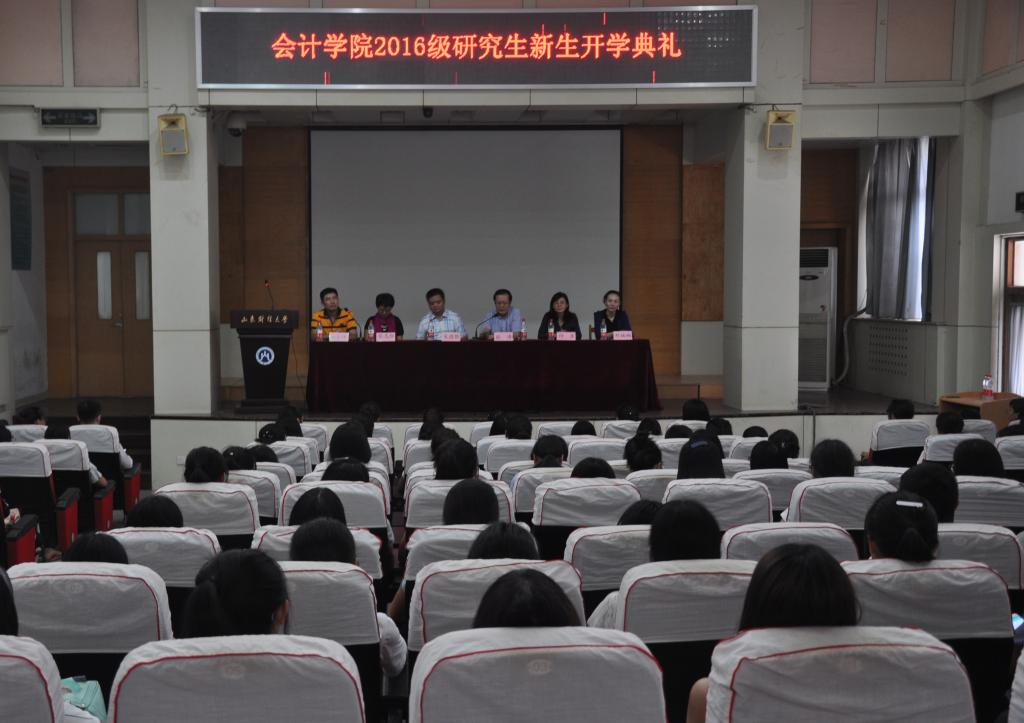9月4日下午,国外足球预测网站 2016级研究生开学典礼于山东财经大学燕山校区第三报告厅隆重举行。国外足球预测网站 党委书记张涛、常务副院长朱德胜、党委副书记付亚、导师代表张志红、教学秘书邢楠楠出席本次典礼。大会由辅导员郑大伟主持。