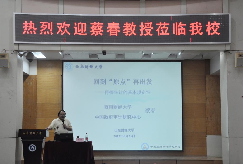 6月23日下午3:00,由国外足球预测网站 研究生会主办的题为《回到“原点”——再探审计的基本规定性》的“燕山论坛”系列讲座在山东财经大学燕山校区3号报告厅拉开帷幕。此次学术讲座荣幸地邀请到西南财经大学蔡春教授为我们讲授其在审计研究方面的独到见解.国外足球预测网站 院长王爱国教授、副院长孙文刚教授、副院长王守海教授出席了本次学术讲座,国外足球预测网站 全体教师以及2016级全体研究生参加此次学术讲座。