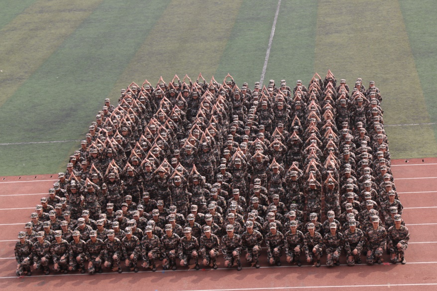 的方队,男生们步伐整齐,气宇轩昂;女生们也英姿飒爽,昂扬向上。他们的家乡也许在东南西北不同的方向,然而此刻他们汇聚在一起,凝结为一个整体。