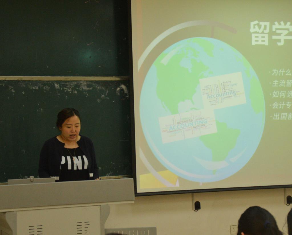 此次讲座韩菲老师从自身经历说起,为同学们分析了主流留学国家的政策、会计专业留学国家选择及就业方向、怎样选择适合自己的国家和院校和留学生就业等问题。韩菲老师介绍到,美国、英国、澳大利亚和加拿大是最受中国留学生喜欢的四大留学国家,欧亚各国也渐渐成为越来越多学生的选择,这为有留学意向的学生提供了更加明确的方向。关于出国留学前的准备,韩菲老师着重强调了语言学习和背景提升,建议到国外短期学习或实习,这些都使学生们受益匪浅。接下来,韩菲老师给出了假期学游的几条建议:英国剑桥商科背景提升、美国会计实训营、美国华尔街-哥大投行金融实训营和新加坡腾飞企业实训,这些都可以使同学们收获到证书、推荐信等。
