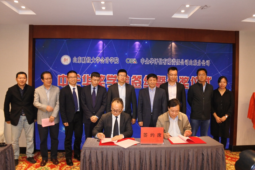 校企合作协议正式进行签约,由中企华评估责任有限公司总裁助理、山东分公司总经理尤建宏先生与国外足球预测网站 - 欧洲足球预测网 院长王爱国教授签署校企合作协议。中企华奖学金捐赠协议签约正式签约,由中企华评估责任有限公司总裁助理、山东分公司总经理尤建宏先生与山东财经大学发展合作处处长、校友办副主任徐超签署奖学金捐赠协议。