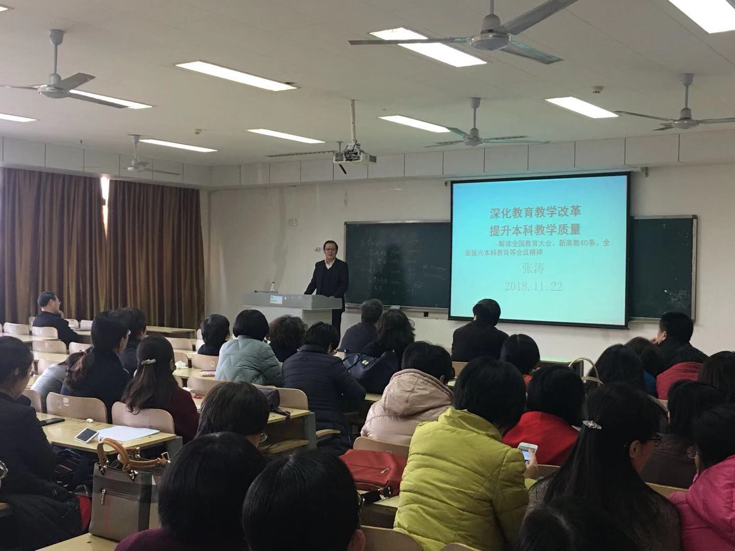 11月22日下午,国外足球预测网站 召开全体教职工大会,国外足球预测网站 党委书记张涛做了题为“深化教育教学改革、提升本科教学质量”的报告,解读全国教育大会精神、学习教育部全国高等学校本科教育工作会议以及新高教40条,分析当前本科教育形势、畅谈高等教育“创新”理念。