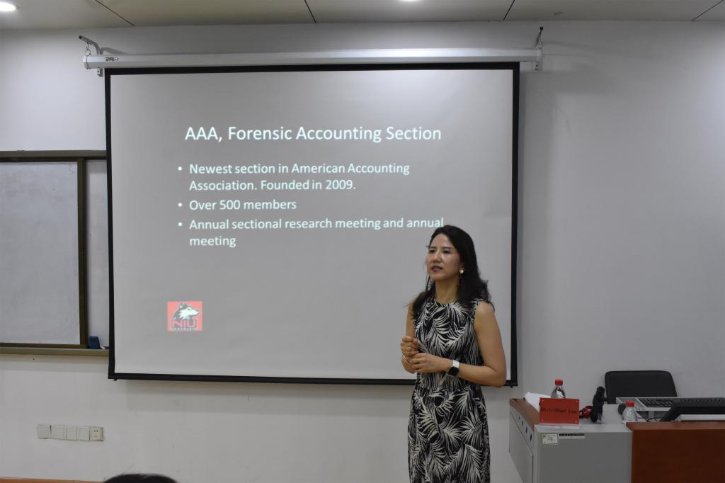 6月24日下午,北伊利诺伊大学李志真教授应我院邀请,于MBA第二教室作题为“行为会计研究:现状及未来”的讲座。讲座由国外足球预测网站 副院长孙文刚主持,国外足球预测网站 2018级学硕和部分老师聆听了讲座。李志真教授主要致力于法务会计和舞弊侦查技术等研究,目前担任美国会计学会FA(法务会计)部门的出版委员会主席、法务会计研究期刊(Journal of Forensic Accounting Research)副主编。