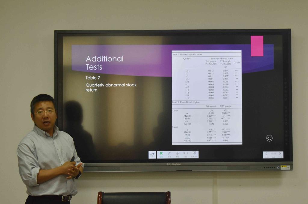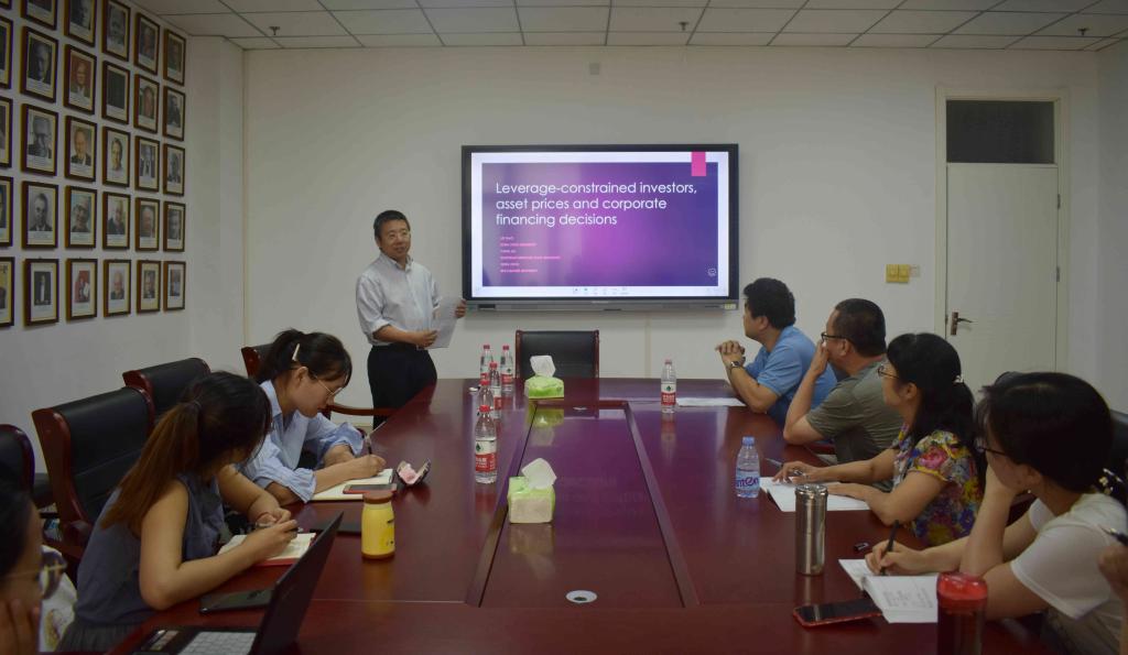 7月16日下午,爱荷华州立大学商国外足球预测 金融系高磊教授应我院邀请,在燕山校区逸夫楼Y309作题为《Leverage-constrained investors, asset prices and corporate financing decisions》的学术报告。讲座由孙文刚院长主持,国外足球预测网站 部分老师以及2018级部分硕士研究生聆听了讲座。高磊教授主要致力于金融市场、资产回报预测、实证公司财务、公司监管、国外足球预测网站 - 欧洲足球预测网、文本分析和机器学习等研究,且将于2019年9月份任职于美国证监会。