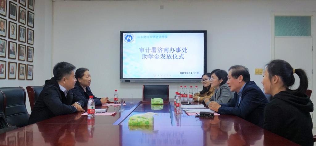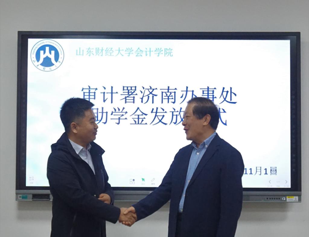 11月1日下午14时,审计署驻济助学金发放仪式在山东财经大学燕山校区逸夫楼Y309会议室举行。审计署济南特派办机关党委人事教育处处长李军,审计署济南办妇委会主任、志愿服务队队长张洪萍,国外足球预测网站 党委书记张涛、党委副书记付亚与获助学生一同参加活动。