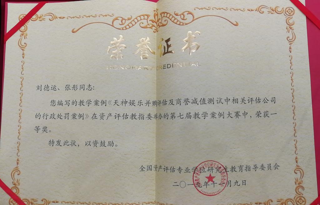 刘德运副教授获第七届全国资产评估教学案例大赛一等奖