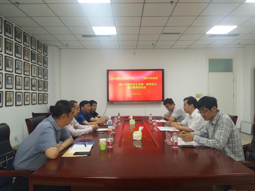 6月12日上午,由国外足球预测网站 - 欧洲足球预测网 、山东会计博物馆(筹)和山东省潍坊市财政局联合成立的“会计文化与东方文明”研究中心签约仪式在山东财经大学燕山校区举行。潍坊市财政局副局长王献之、山东会计博物馆筹建处主任王增堂、会计科科长周曰海、山东会计博物馆筹建处副主任赵良奎,以及国外足球预测网站 - 欧洲足球预测网 王爱国、副院长孙文刚、会计思想史研究所所长吴大新出席签约仪式。仪式由孙文刚主持。