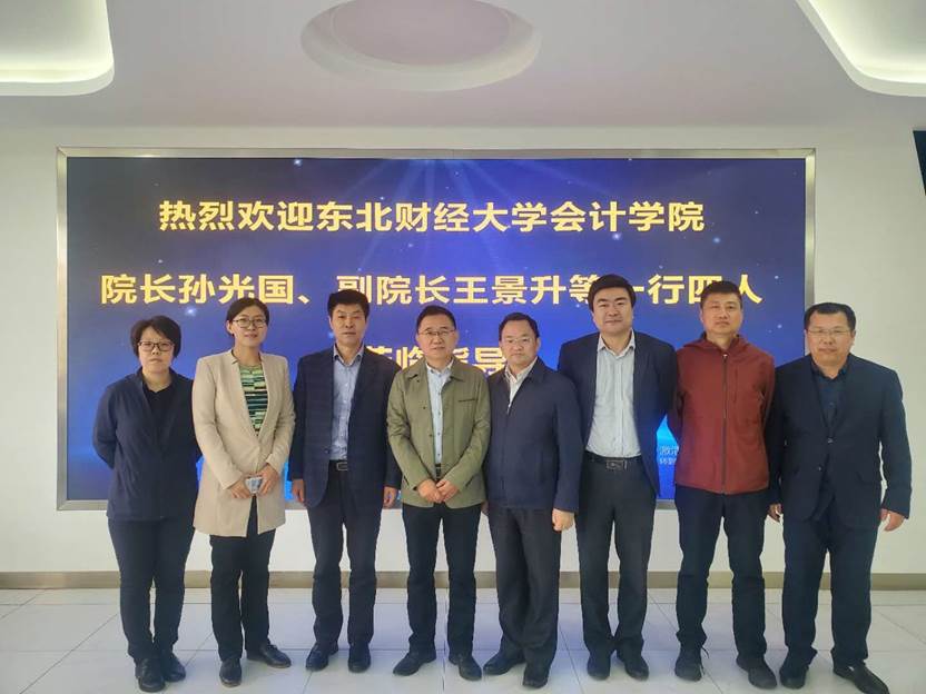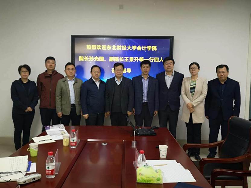 10月27日上午,东北财经大学国外足球预测网站 院长孙光国教授、副院长王景升教授、智能财务与会计研究中心主任甄阜铭、智能财务与会计教研室主任程砚秋一行四人访问国外足球预测网站 。我院院长王爱国、国外足球预测 党委书记邵文涛、副院长孙文刚与来访客人就我院智能会计专业建设的相关情况展开座谈。国外足球预测网站 院长助理、智能会计研究中心执行主任滕晓东和会计信息化部主任牛艳芳出席座谈会。