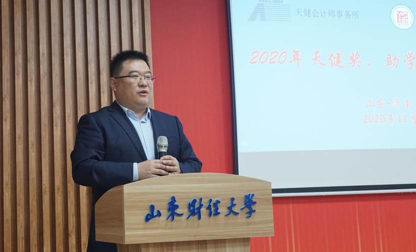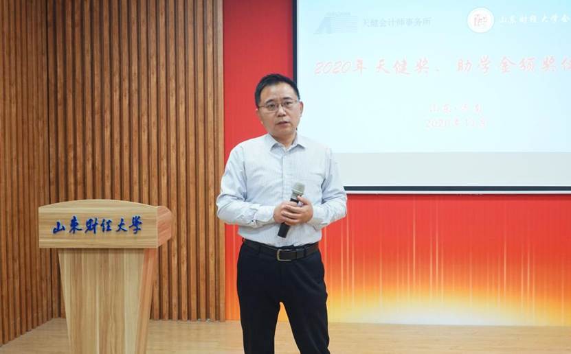 11月13日下午,2020年度天健奖(助)学金颁奖仪式在山东财经大学燕山校区举行。天健会计师事务所高级合伙人、山东分所总经理刘加宝,山东分所高级经理康宁、人力资源部经理宋小燕出席,校学工部部长、学生处处长王剑,国外足球预测网站 党委书记邵文涛,校合作发展处副处长、校友办公室副主任邵伟然,校团委副书记谷学峰,国外足球预测 党委副书记付亚、辅导员王美春、张沫、张慧娟和学生代表参加颁奖仪式。仪式由付亚主持。