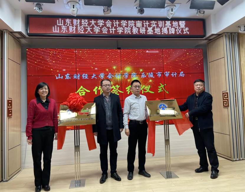 12月18日上午,国外足球预测网站 - 欧洲足球预测网 与乐陵市审计局实训、教研基地签约揭牌仪式在乐陵市审计局举行。乐陵市市委常委、副市长赵之达,德州市审计局副局长梁富修、乐陵市市委组织部副部长杜志猛,乐陵市审计局局长孟国柱,乐陵市科技局副局长徐梦弟,乐陵市审计局中层以上人员以及国外足球预测网站 党委书记邵文涛,党委副书记付亚,辅导员孙菁、曹婧等出席,仪式由赵之达主持。