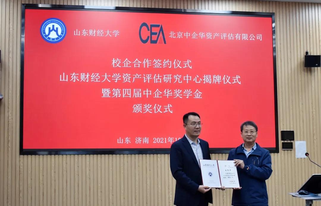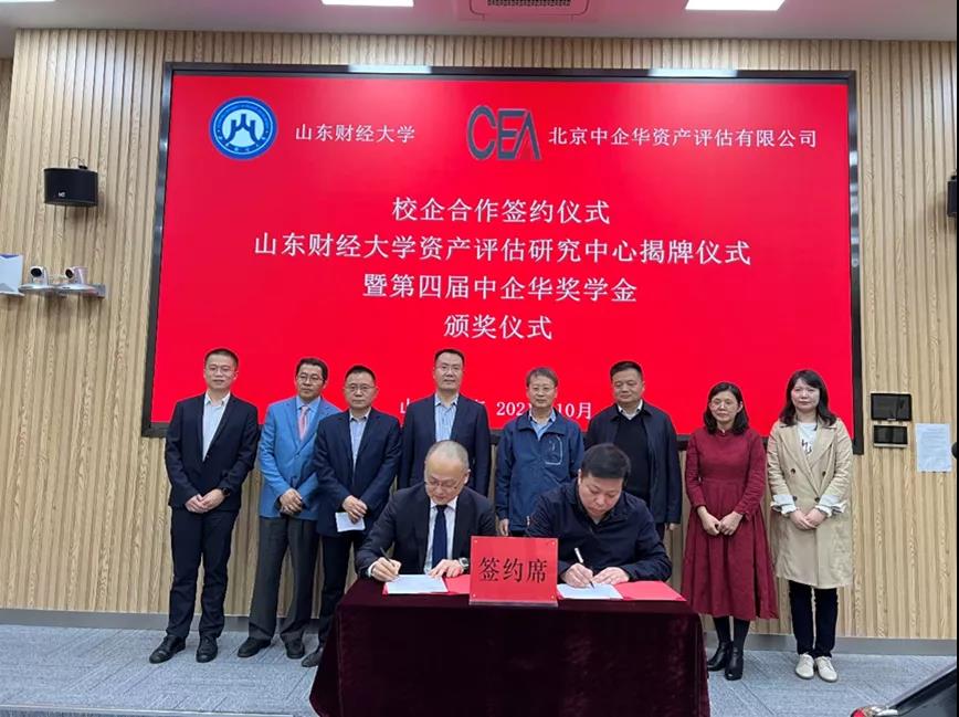 2021年10月15日下午,山东财经大学、北京中企华资产评估有限责任公司校企合作签约仪式、山东财经大学资产评估研究中心揭牌仪式、中企华科研基金捐赠仪式、刘登清客座教授聘书颁发仪式、第四届中企华奖学金颁奖仪式在我校燕山校区顺利举行。