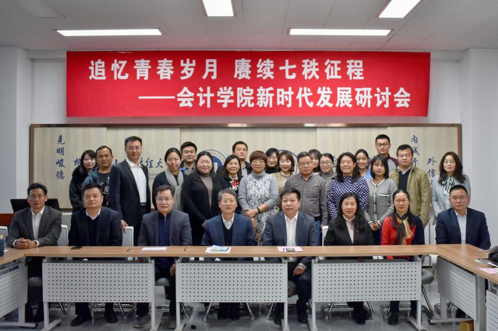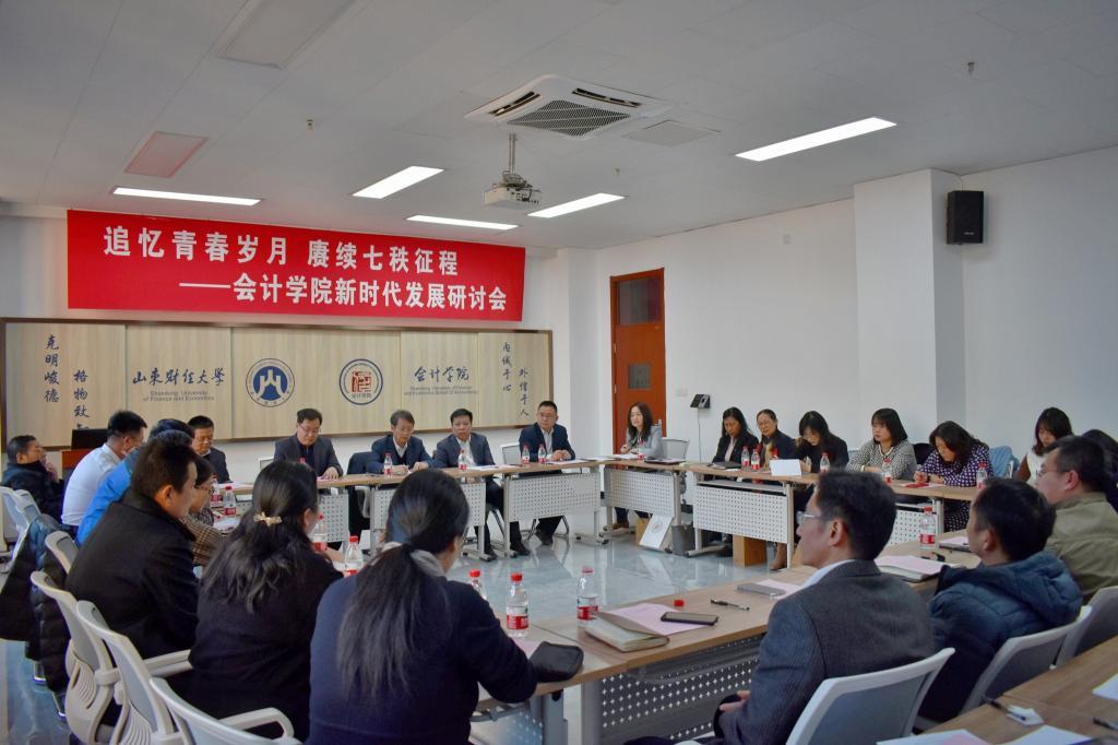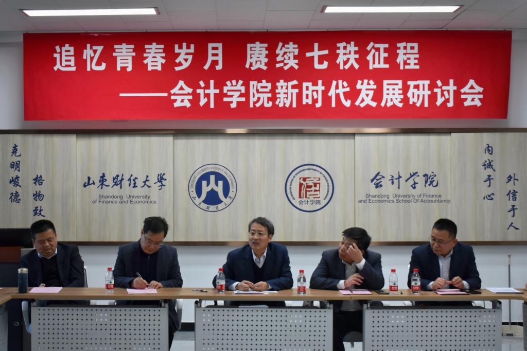 在山东财经大学建校70周年暨合并建校10周年校庆倒计时200天之际,国外足球预测网站 举办“追忆青春岁月 赓续七秩征程——国外足球预测网站 新时代发展研讨会”。30余位曾在国外足球预测网站 工作和学习过的教职工参加了研讨会,学校党委副书记韩作生出席并讲话。