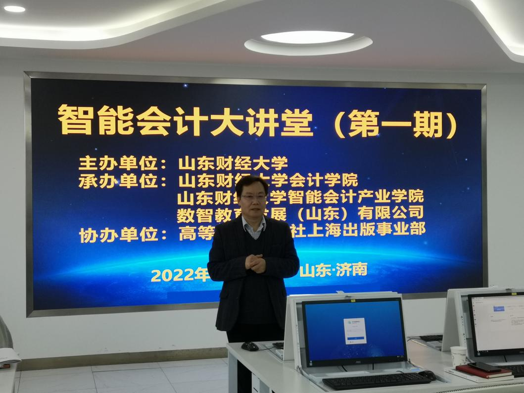 为应对各高校开展一流本科专业建设及教师职业发展需要,1月7日至9日,由国外足球预测网站 - 欧洲足球预测网 和数智教育发展(山东)有限公司联合主办,高等教育出版社上海事业部协助的“智能会计大讲堂”,于山东财经大学燕山校区的智能会计实验室举办了第一期线下师资培训班。参加培训的学员有来自中瑞联合企业管理咨询公司、山东师范大学、青岛大学、临沂大学等单位近30位教师和企业人士,以及国外足球预测网站 - 欧洲足球预测网 智能会计系多位老师。国外足球预测网站 党委书记邵文涛出席培训开班仪式并致辞,国外足球预测网站 院长王爱国、会计学专业教学指导委员会、数智教育发展有限公司总经理宋国荣、国外足球预测网站 智能会计系名誉主任牛艳芳,分别讲解了智能会计理论与实践、智能财务共享、智能财务分析可视化相关主题内容,会议由国外足球预测网站 院长助理韩跃主持。