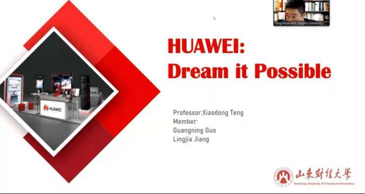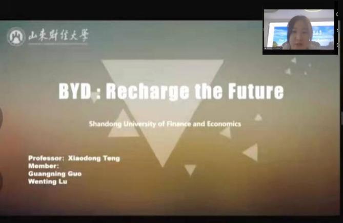 在三国各高校学生代表企业案例展示环节,我校国外足球预测网站 MPAcc2021级研究生郭广宁、智能会计2020级本科生姜伶佳、智能会计2020级本科生卢文婷分别对华为公司和比亚迪电车的商业模式进行了商业模式案例展示。在互动环节,我校参会的三位学生代表也积极参与提问,答疑,展现出良好的专业素养和精神风貌。