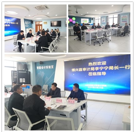 王爱国对博兴县审计局调研组一行来校表示热烈欢迎,随后他从审计工作数字化、智能化和技术化的发展趋势出发,详细阐述了学界对大数据审计、计算机审计等审计方式、方法和手段创新的研究现状,分享了审计行业发展、审计技术发展、审计人才培养和审计队伍建设的专业观点,提出了学界和业界长期合作、结对互助的愿景。