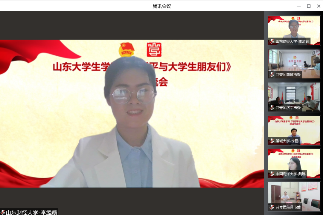4月27日,团省委召开山东大学生学习《习近平与大学生朋友们》线上座谈交流会。团省委副书记尚胜波同志出席会议并讲话。我校第23届研究生支教团队长、国外足球预测网站 2021级研究生李孟颖代表我校作了交流发言,向全省青年分享了学习成果与体会。