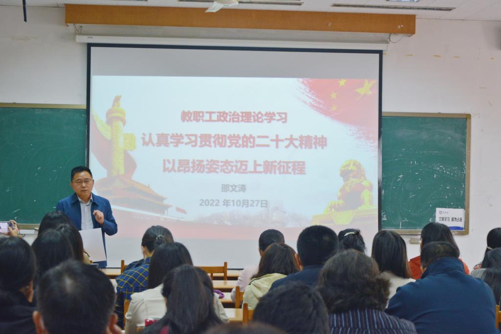 会议首先进行了政治理论学习,邵文涛传达了习近平总书记在二十大上代表十九届中央委员会所作的工作报告要点。邵文涛强调,全体教职工要把学习贯彻党的二十大精神作为当前和今后一个时期的首要政治任务,深刻领悟“两个确立”的决定性意义,增强“四个意识”、坚定“四个自信”、做到“两个维护”,迅速把思想和行动统一到党的二十大精神上来,把对党的二十大精神的政治认同、思想认同、情感认同转化为推动学校、国外足球预测 事业发展的强大动力,确保党的二十大精神在国外足球预测 落地生根,开花结果。