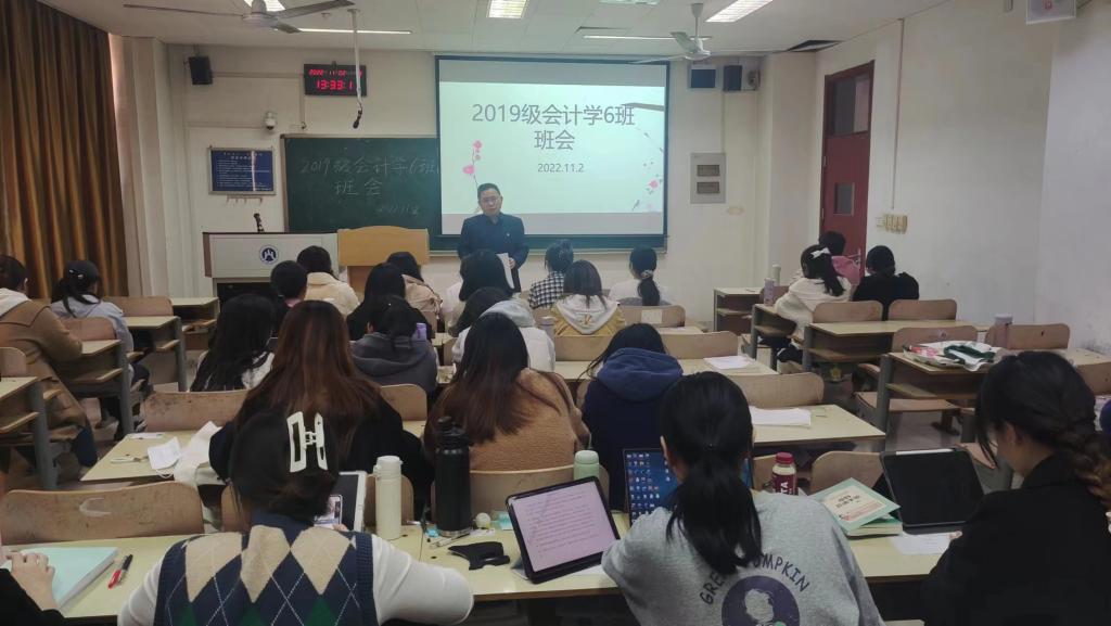 为教育引导广大青年学生坚定理想信念,积极传承和践行红色精神,争做有理想、有本领、有担当的时代新人,国外足球预测网站 党委书记邵文涛于11月2日下午在燕山校区Y203,为会计1906班的同学们开展了主题班会。
