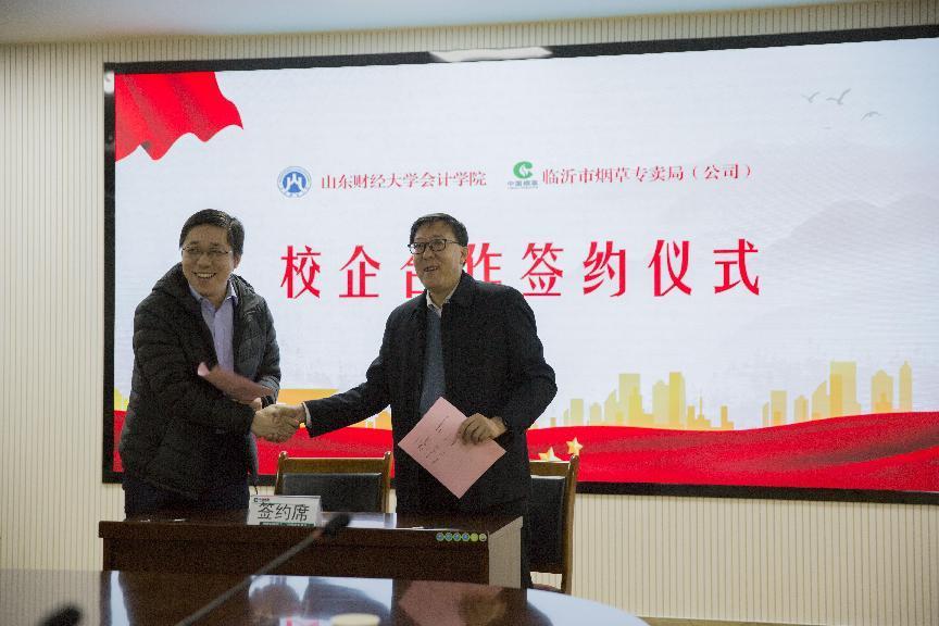 临沂市烟草专卖局(公司)财务科科长韩跃龙与国外足球预测网站 院长助理韩跃签署合作协议